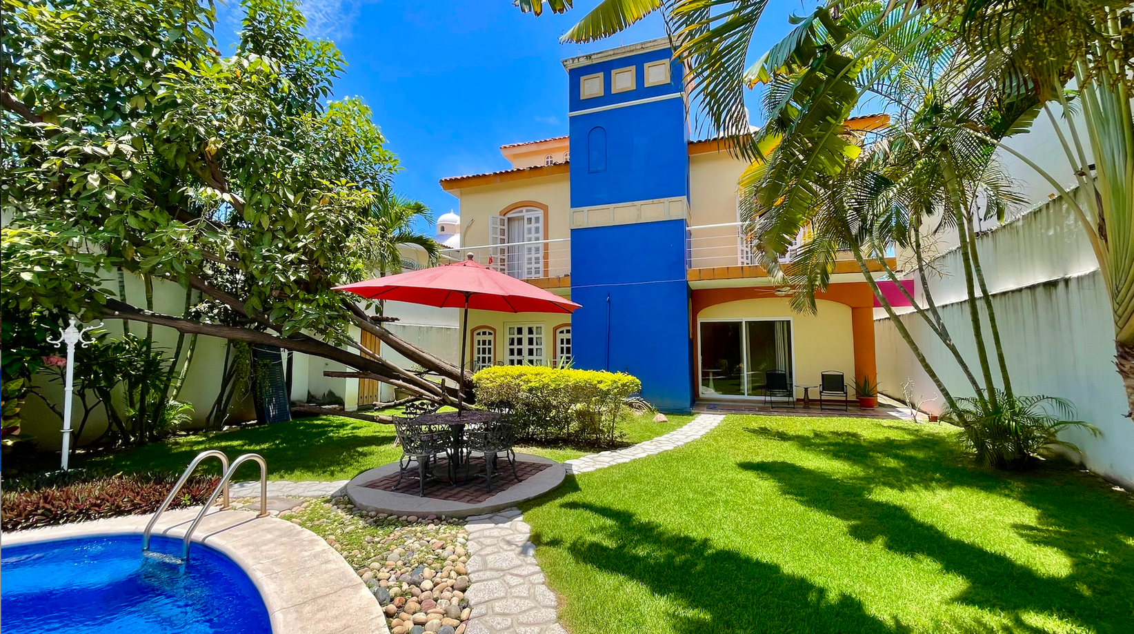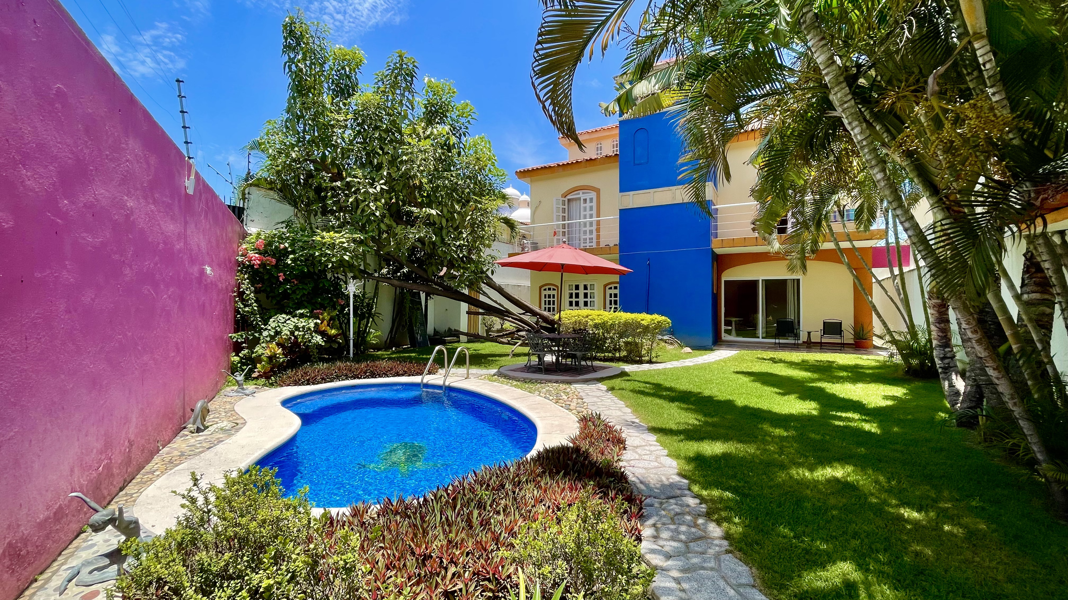 Casa de estilo mexicano con encanto único, distribuida en tres niveles. Cuenta con 7 recámaras, cada una con baño completo, espacios amueblados con detalles auténticos de la cultura mexicana, cocina equipada, patio amplio y alberca privada. Ideal para disfrutar en familia.